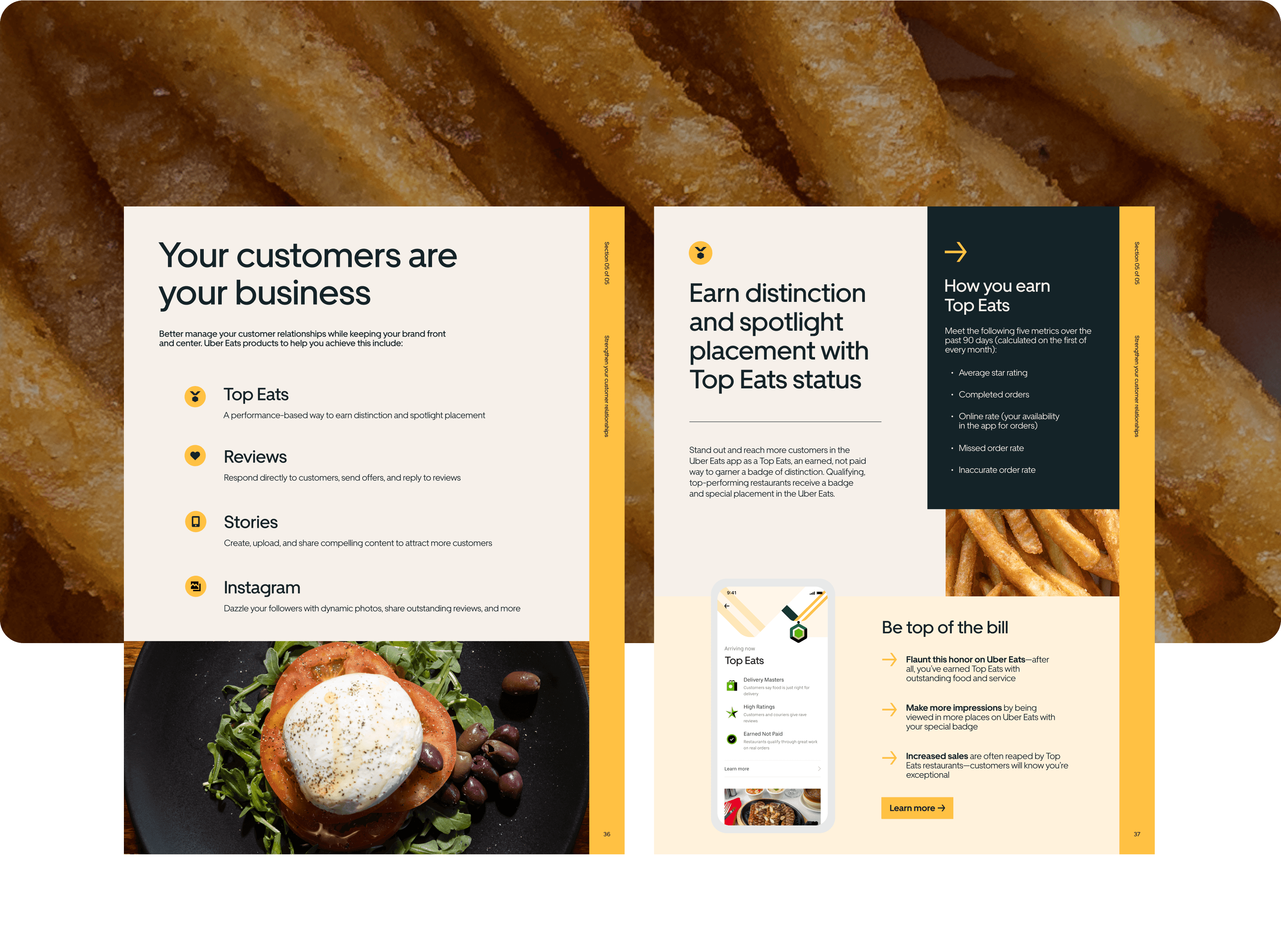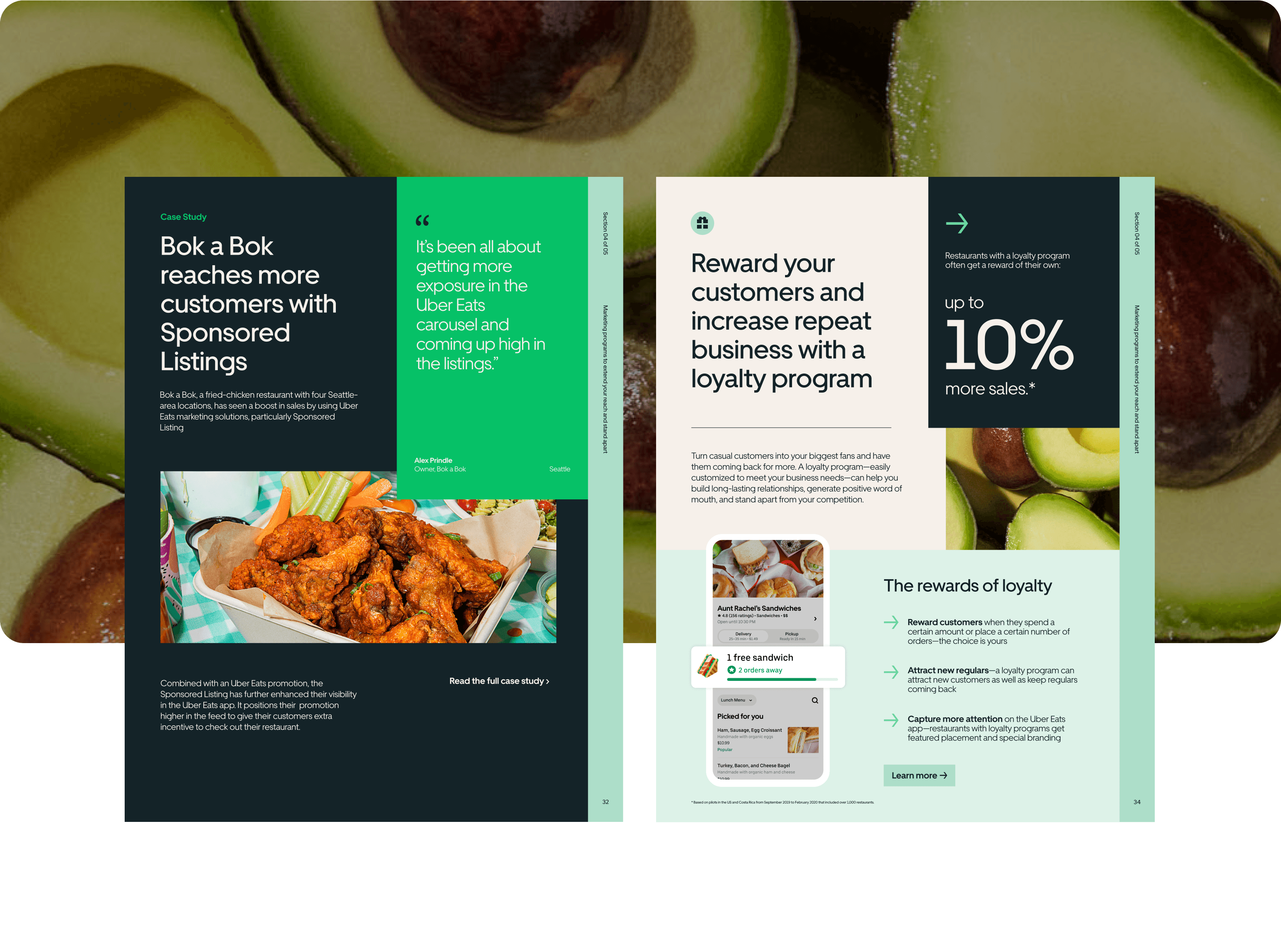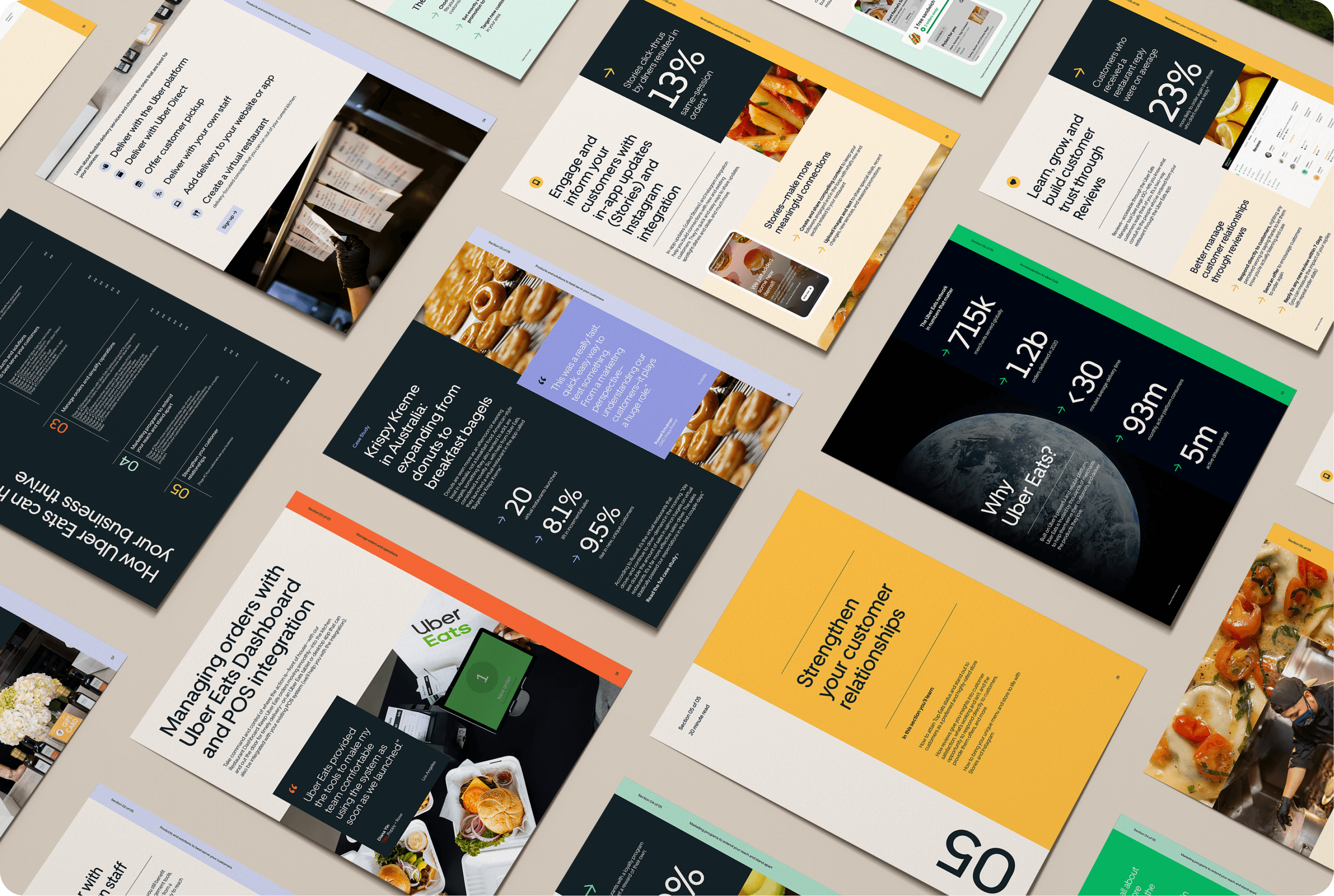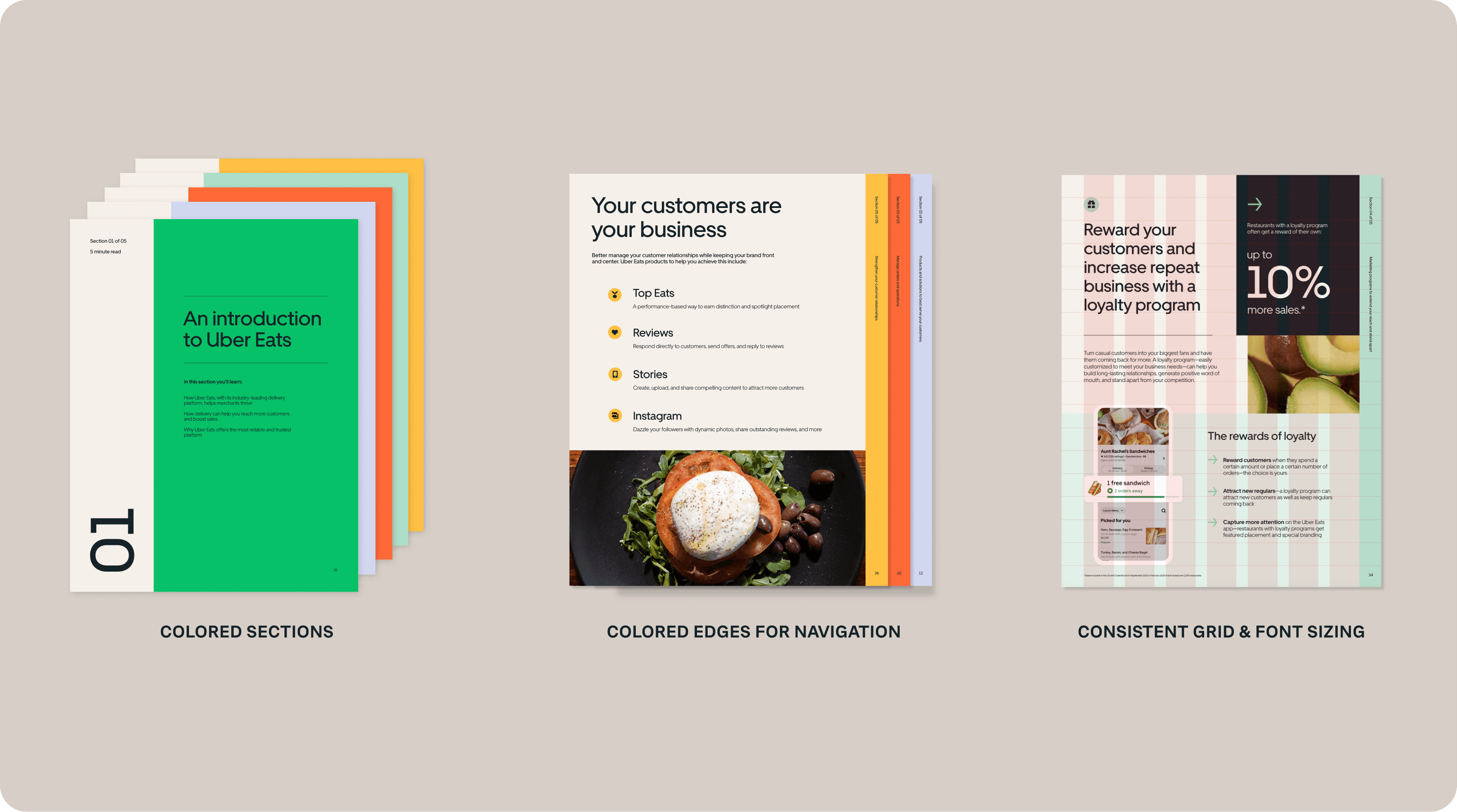 To create a centralized resource that better communicates Uber Eat's product offerings, we developed a comprehensive product guide for prospective merchant partners to make quicker, better informed decisions as they search for their next delivery platform.