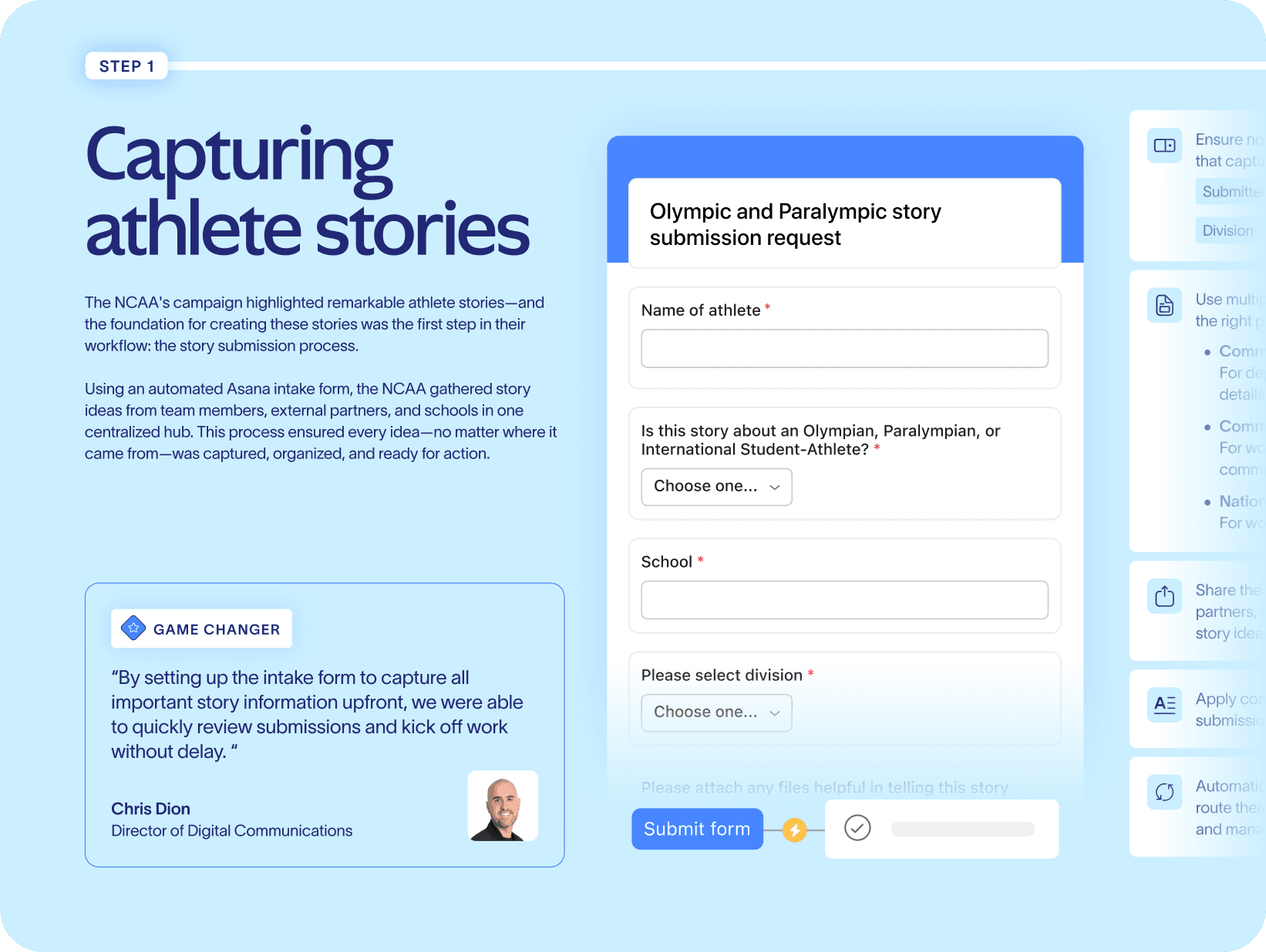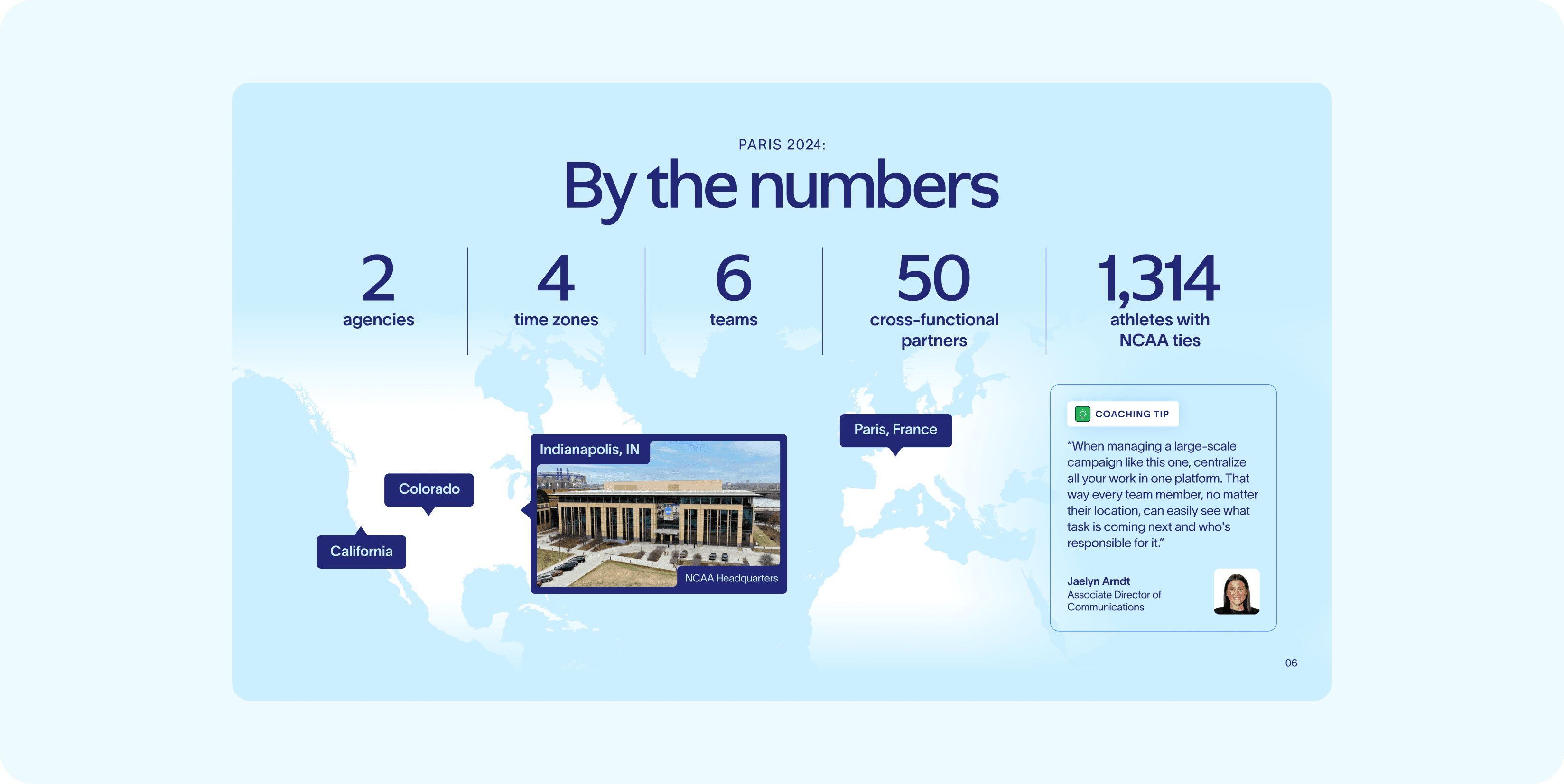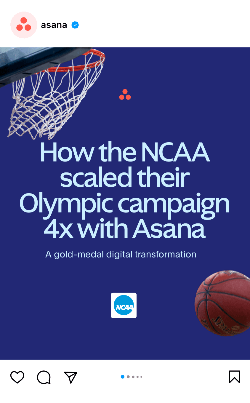 In partnership with NCAA, we developed a customer playbook to showcase the impact of their Olympics campaign through the lens of the Asana product.
